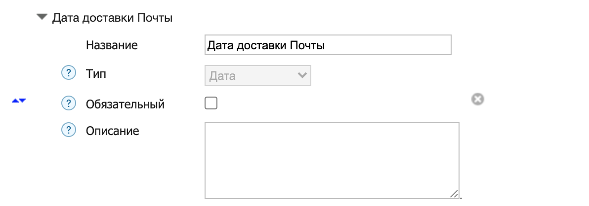 Опция позволяет транслировать ссылку на накладную Почты в доп. поле документа. При повторном создании накладной для одного и того же документа, ссылка будет заменена новой.