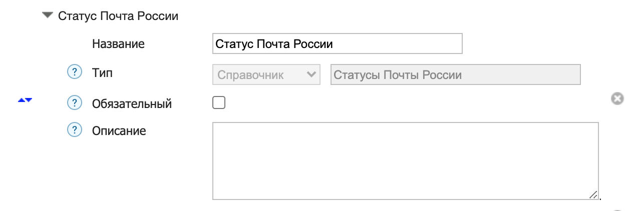Трансляция текущего статуса накладной в доп. поле документа. При установке приложение добавляет в МоемСкладе справочник Статусы Почты России и создает доп. поле документа Статусы Почты
